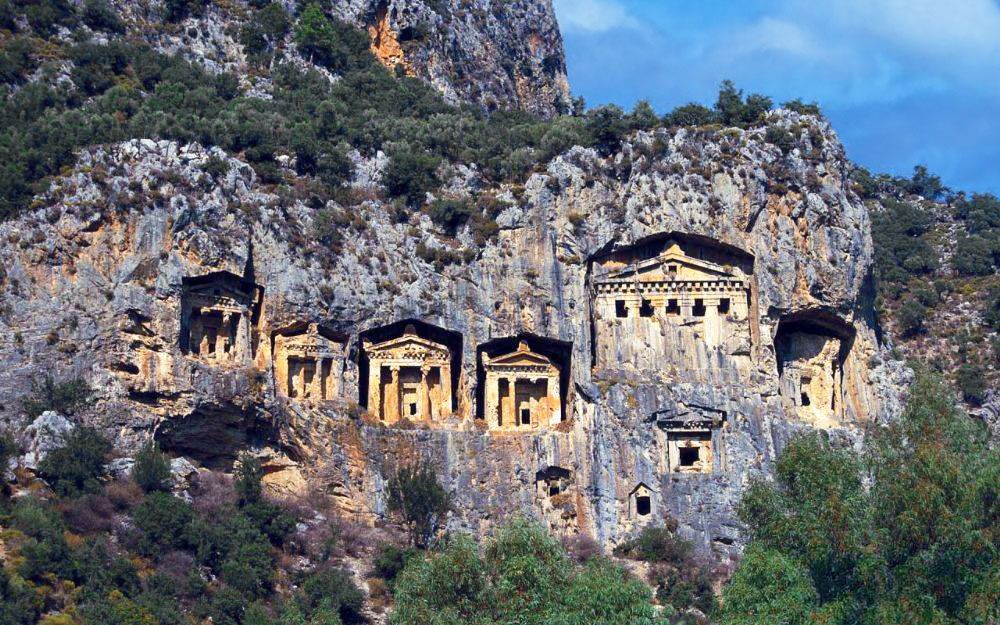 - After the lunch break, we visit the Tombs of the Kings, the must-see symbol of Dalyan. Dalyan King Tombs are considered examples that reflect the extraordinary architectural talents of the people who lived in the Ancient Period. The tombs are located above the canal and our guests are offered the opportunity to take photos. Meanwhile, detailed information about the Tombs of the Kings is provided by our guides.